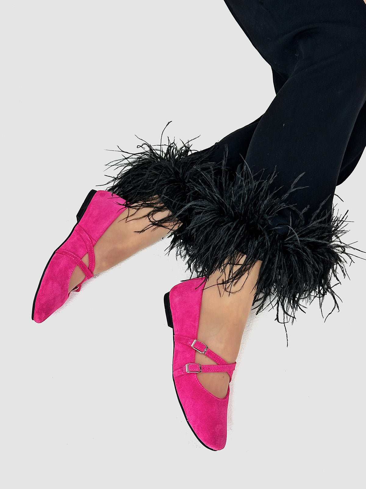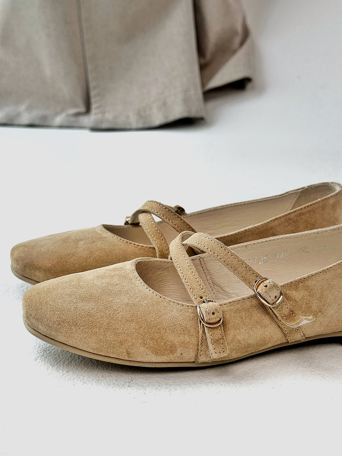 Damskie, eleganckie baletki wykonane z naturalnego zamszu.